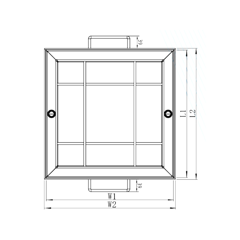 | 품목 | 크기(mm) | 개구부 크기 W1xL1(mm) | 전체 크기 W2xL2(mm) |